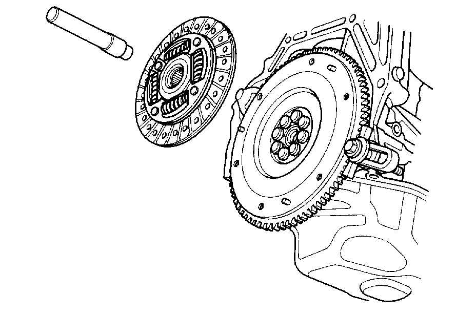1. Temporarily install the clutch disc onto the splines of the transmission mainshaft. Make sure the clutch disc slides freely on the mainshaft.