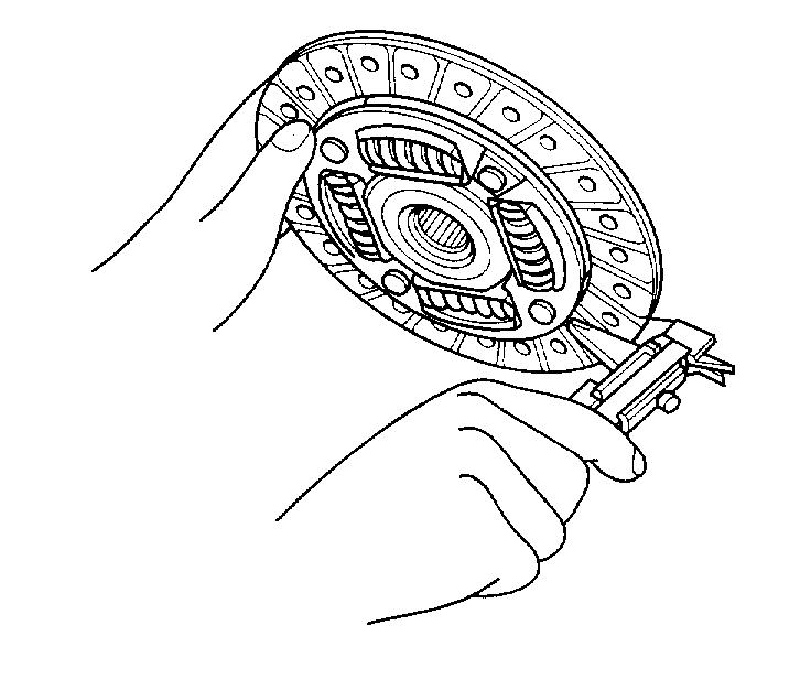 9. Measure the clutch disc thickness. If the thickness is less than the service limit, replace the clutch disc.