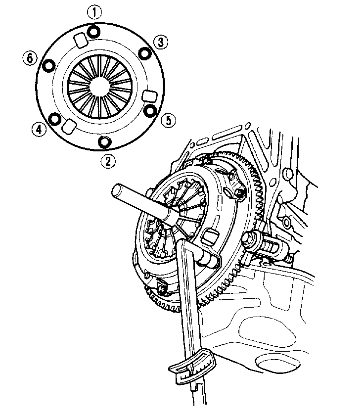 6. Torque the mounting bolts in a crisscross pattern. Tighten the bolts in several steps to prevent warping the diaphragm spring.