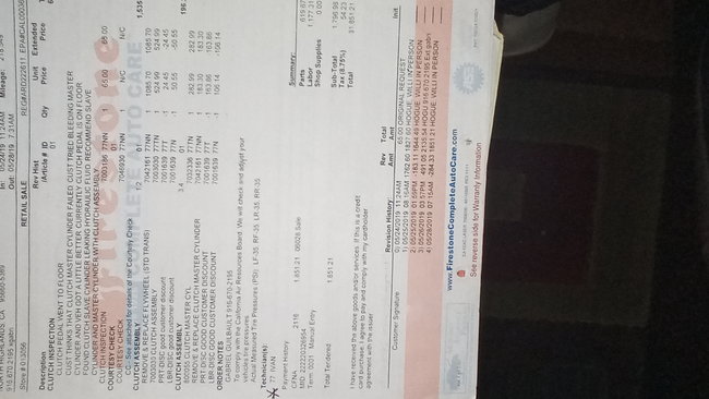 after my clutch was repaired I've sent you multiple text and pictures regarding the job that they did and the questions I had about it.