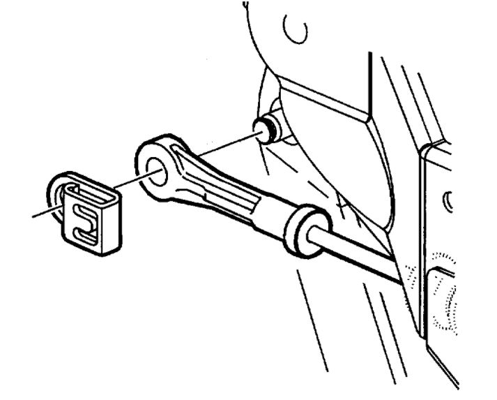 4. Remove the clutch master cylinder pushrod from the clutch pedal assembly, 1st design.