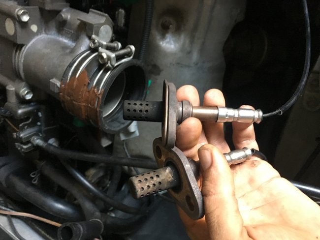 Check engine light with code 25 engine running lean happens each time I drive it and warms up and each time I turn the car off and turn the car on again and start driving for about a minute or so the code comes back on, but still no missing or no power loss. Cleaned the o2 sensors overnight in petrol then drove the car for about an hour to get replacement o2 sensors. Removed the old o2 sensors and one is black while the other looks normal. Drove it home and took the new o2 sensors out to check em and the same problem one looks normal and the other one is black.