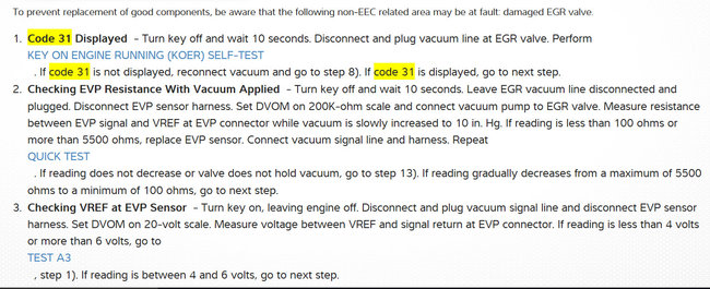 Okay, I have a really annoying problem that I just cannot figure out. I have been getting codes 31 and 22. We took it through emissions and it failed horribly. So we got an obd1 ran the codes and replaced the EGR sensor and map sensor we also got a new O2 sensor PCV sensor and a new EGR valve. We replaced the spark plugs got a new fuel pump and filter checked all the lines to make sure there was no vacuum leak and when we were all done the truck ran smooth. We took it through emissions and it passed with flying colors the truck ran like a dream then about three days ago the check engine light came back on and it started running rough again and the same two codes are popping back up. we replaced the whole system and its still reading the codes we even checked the new parts to make sure they weren't defected. Now here is the part that is messing with us we went outside to turn it on this morning and the check engine light was off the truck was running smooth we drove it all day with no problems went to turn it off . a few minutes later we turn it back on and the truck started running rough again the check engine light back on and the same two codes popped back up. I have no idea what else to do. The last thing I can think of is carbon build up but I am not sure. Is there anyone who might know what the problem is your suggestions would be very helpful at this point? Also, sorry for the long message.