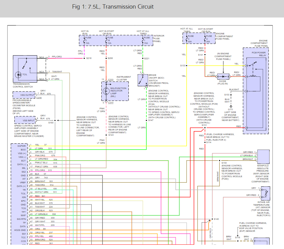 Here are the transmission and VSS wiring diagrams and it looks like there is a few fuses that should be checked before we got further.