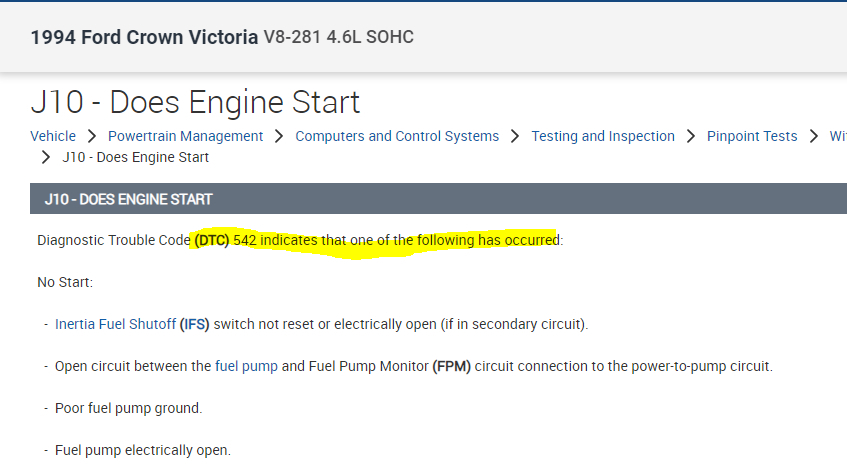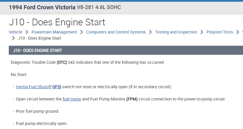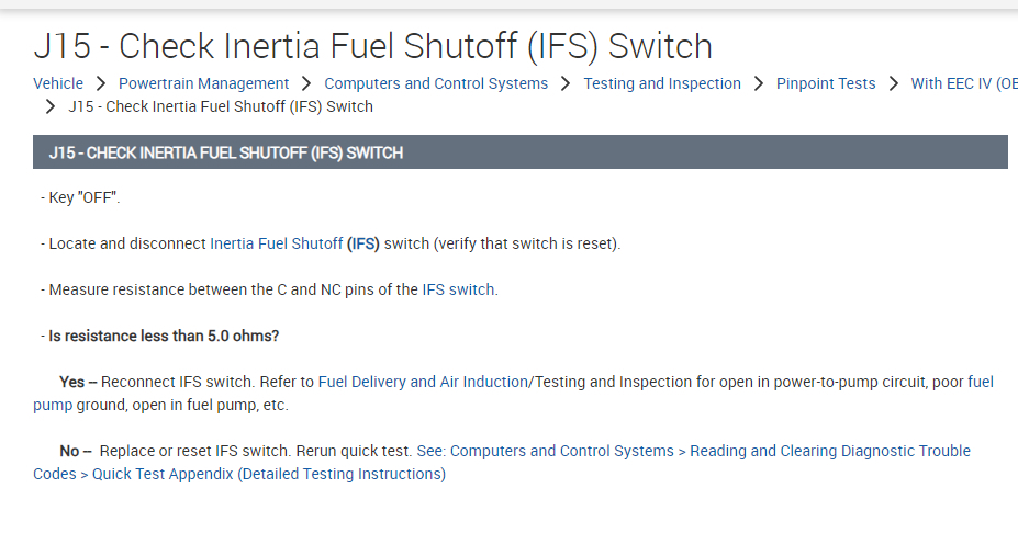 If there is no power getting to the inertia switch, we need to go back to the fuel pump relay and see why it isn't sending power. If there is power to and from the inertia switch, there has to be an open between the pump and switch.
