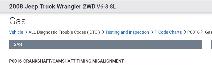 In search of a little help. I have a 2008 Sahara JKU. I gave the vehicle to my son who just got his drivers license. He has been driving it for several months now. He decided to put a throttle pedal controller on it. After he installed it the vehicle done fine for about four miles and then it started throwing engine codes P0335 and put the Jeep in reduced power mode. We removed the throttle controller and cleared the code but it came back within a few minutes. I replaced the crankshaft positioning sensor and cleared the code again. Drove the Jeep for a few minutes and got another code P0340 for the camshaft positioning sensor and right back into reduced power mode. So I replaced the camshaft positioning sensor. Cleared the codes and The jeep done fine for a few minutes and then threw another code. This time it's a P0016 and right back into reduced power mode.