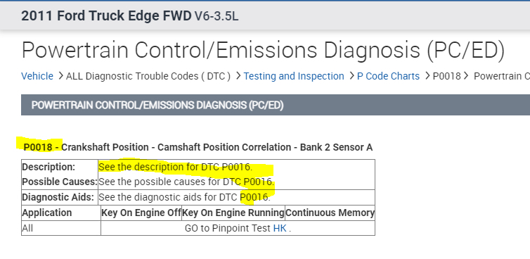 When I check the code, P0018, it tells me to check P0016. See pics below.