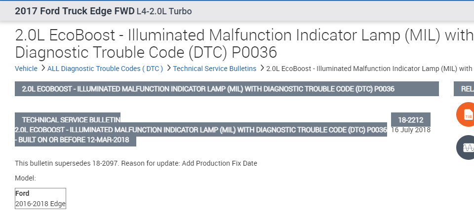 It could be caused by the sensor itself, a wiring issue, a damaged or corroded connector, a short, or an open circuit. Also, there is a technical service bulletin specific to the code which indicates the need to reprogram the PCM.