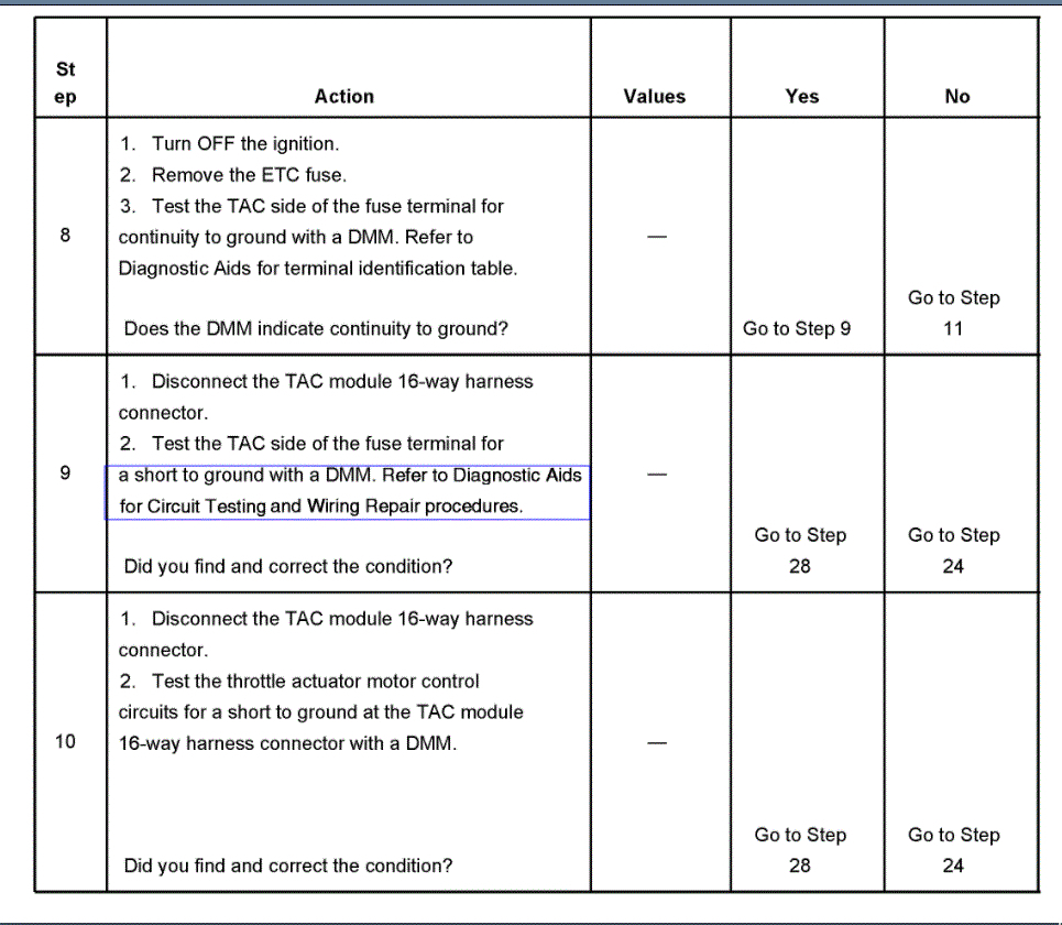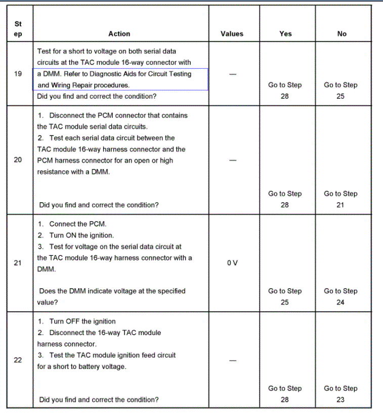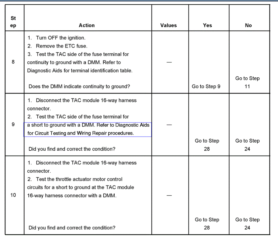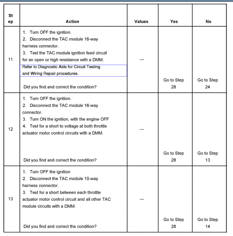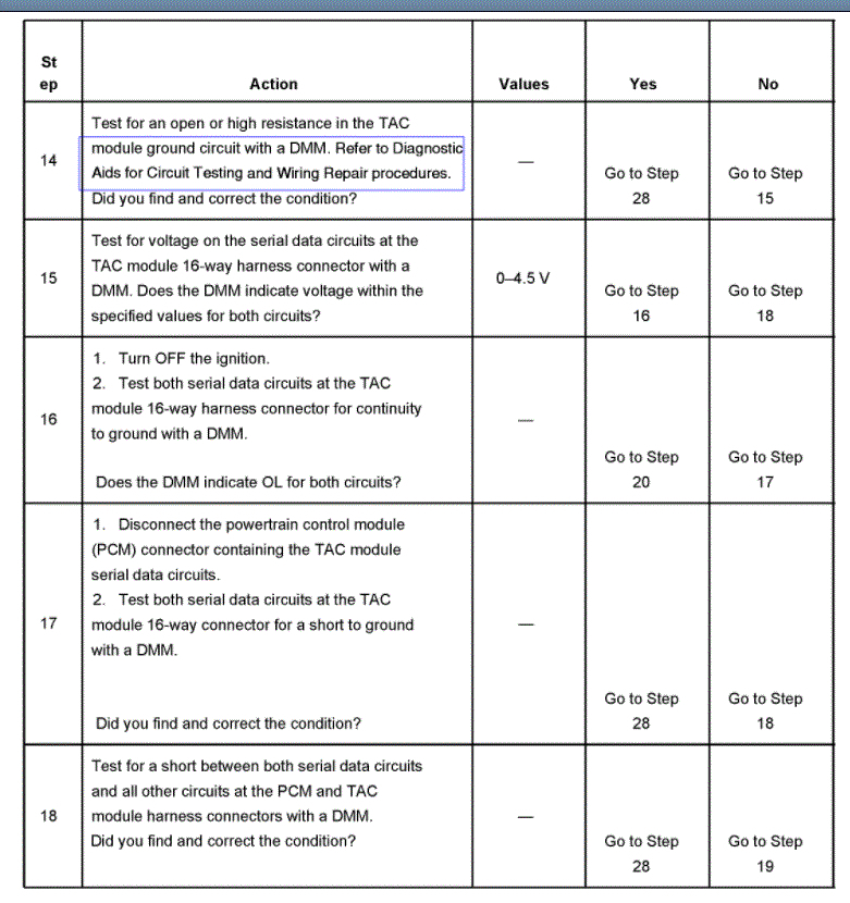 Hello, hope you had a good Christmas. Please bear with me this truck is a basket case. I have been doing this since 1980 and I can usually figure out can problems out, but this has got me stumped. i checked for grounds Ohomed the wires out between PCM and tac and between TPS and the tac and between the throttle petal actuator and the tac, had 5v reference at the 3 wires at throttle petal had 5v at tac module. I can clear all codes now and only p1518 is there, I can clear it too, but I have to do it twice. Engine will crank and run but throttle will not work, and engine will not turn off, I have been rewiring the wires out for days and I would like to know what the proper output at each wire going to the throttle body are supposed to be. Also, what is the voltage for serial is supposed to be coming off the PCM blue plug 14 and 15. This truck has been a problem. What am I missing? I have a blue driver, scanner and a Launch please point me in the right direction. Thanks