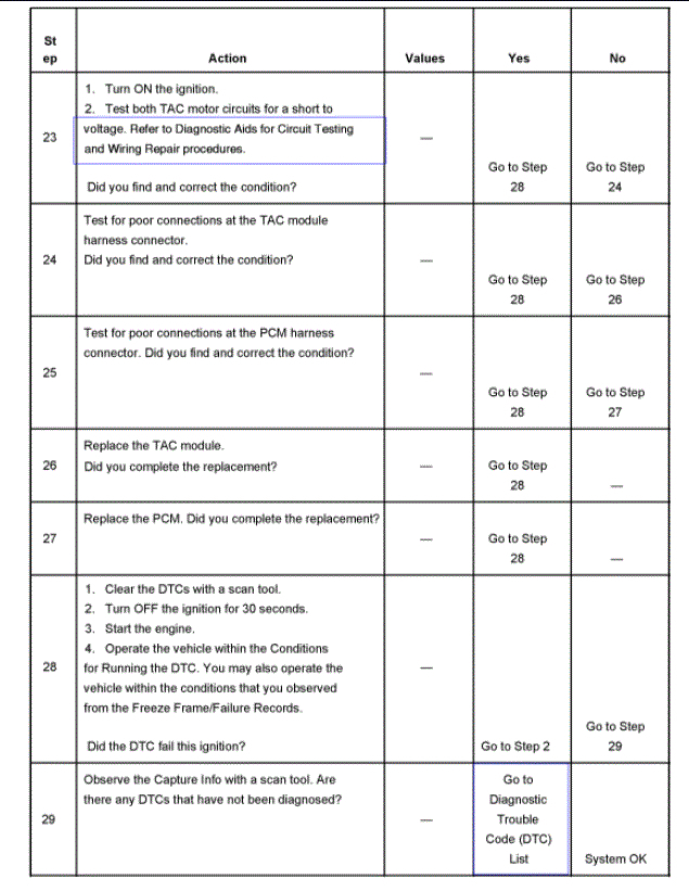 Let me update you, my ignition switch tested good, but I had 1 so I put it on, still same, I used the flow chart u sent me and when I got to step 13 these are my results at TAC 16 pin plug the yellow had 0.286 V it goes to throttle body brown had 0.265V bla/what has 0.183V. All go to throttle body, now when you start the truck and then turn the key off the dash lights flicker and it starts running all the parameters, reduced engine power low washer fluid ect,ect, and I unplugged ignition Switch. same problem. Then the under-hood fuse is all hot, I tried pulling out the high amp. Fuses did not do anything now when I pull PCM fuse engine will finally shut off then fuses are off, now these are my findings when I did this test. With key off I disconnected the TAC 16 pin plug and also the throttle body plug .