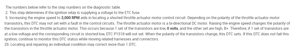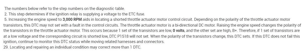 Regardless, I attached the diagnostics below for the P1518. Take a look through it and let me know if you are comfortable performing it. Also, it does include voltages. In most cases, you will find right around a 5v reference. The throttle actuator at idle (foot off the throttle) should be around 1v.