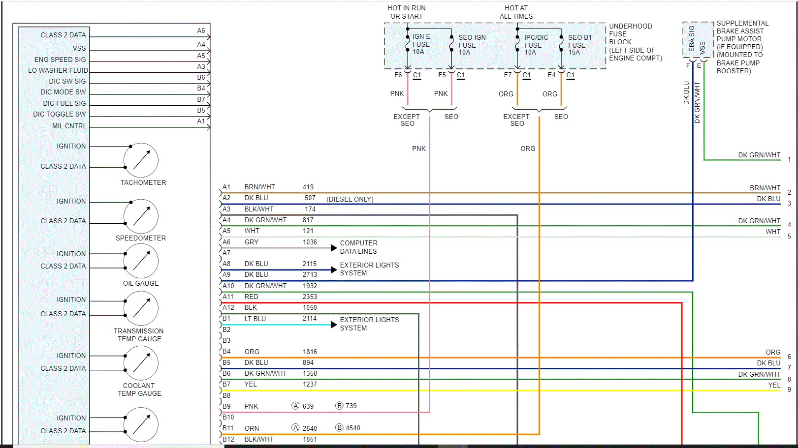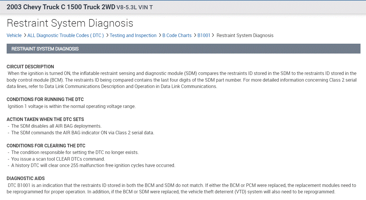 As far as your requests, here is what I did. Pics 1-3 are the diagnostics specific to the B1001. Pics 4-7 are the wiring schematics for the instrument panel, and oil pressure switch. The last 4 pics are of the restraint circuits.