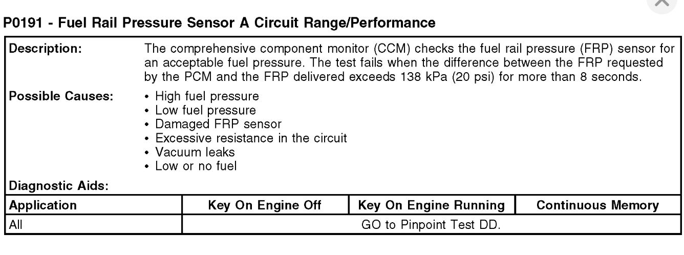 Fuel Rail Pressure (FRP) Relay Sensor Damaged