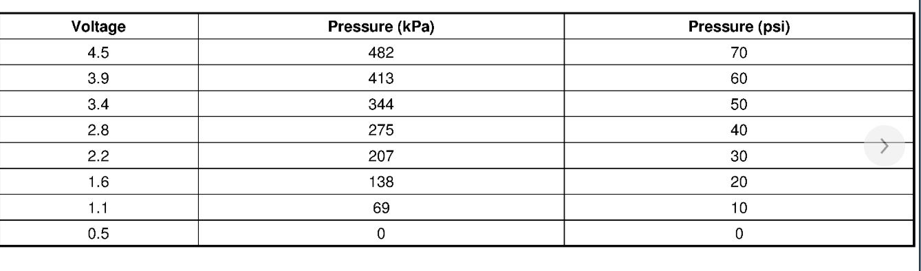 FRP SENSOR VOLTAGE AND PRESSURE SPECIFICATIONS