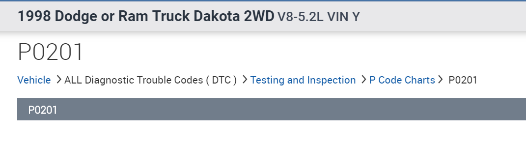 Thanks for your reply, which sounds like it would make sense if that were the code. except it never threw a p0301. It’s p0201. Which I understand as an injector circuit malfunction in cylinder one. We are messing with it trying to clean it and see if it will help but so far it keep coming back the same. Going to be changing the plugs regardless so thank you for the helpful links.