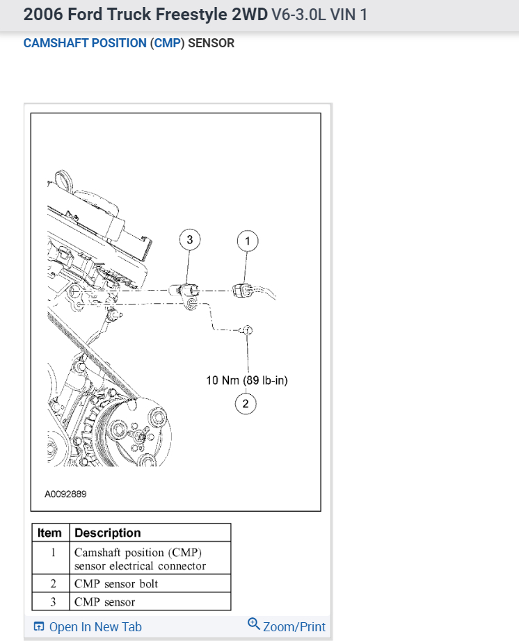 I used to have a 2000 Kia Sephia back in the 2010s and I had noticed that its camshaft position sensor was right behind the exhaust camshaft on the back of the cylinder head and the 2000 Kia Sephia was a straight four cylinder engine so it only had a single cylinder head above its engine block, now I have a 2014 Nissan Versa SV and while it also has a single cylinder head above the engine block I can't see a camshaft position sensor, I only see two electronic variable valve timing actuators on each side on the front of the cylinder head, the Ford Freestyle is a V-6 engine so it has two cylinder heads above its V type engine block, I never had a Ford Freestyle so I don't know if it is dual overhead camshaft with four camshafts on both cylinder heads or single overhead camshaft with two camshafts one on each cylinder head, so the camshaft position sensor must be behind the camshaft, the exhaust camshaft if it is dual overhead camshaft, what the camshaft position sensor does is it triggers an ignition module to temporarily interrupt the flow of low voltage electricity to each of the direct distributorless ignition coils' primary windings so that the electromagnetic field that has formed collapses and forms high voltage secondary electricity to the coils' secondary windings which ignite the spark plugs and fire up the air-fuel mixture from the intake manifold which pushes down the pistons and piston rings and rotates or turns the crankshaft, flywheel, transmission planetary gears, differential gears and front wheels but I don't know how does an all-wheel drive works, I know that I have included too much information but is that V-6 engine misfiring or running rough or shaking at idle speed or does it just operate with the check engine light?