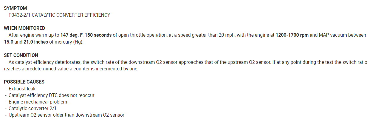 I'm still wondering though, is p0432.-the driver's side or passenger side bank 2 [ after the 2 cats at engine ].