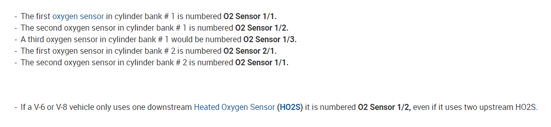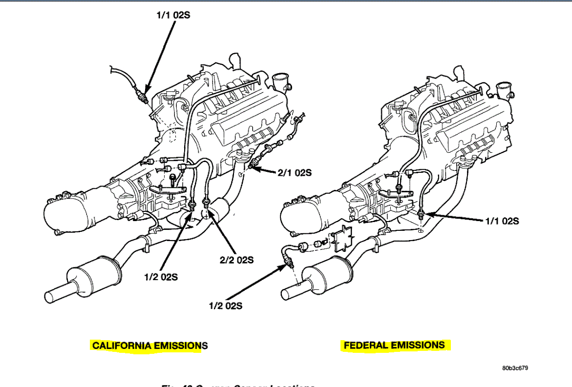 If you look at the pic below, the sensor locations are different based on how the vehicle was ordered. On the left are the locations for CA emission systems. The one on the right is related to basic Federal emissions systems.