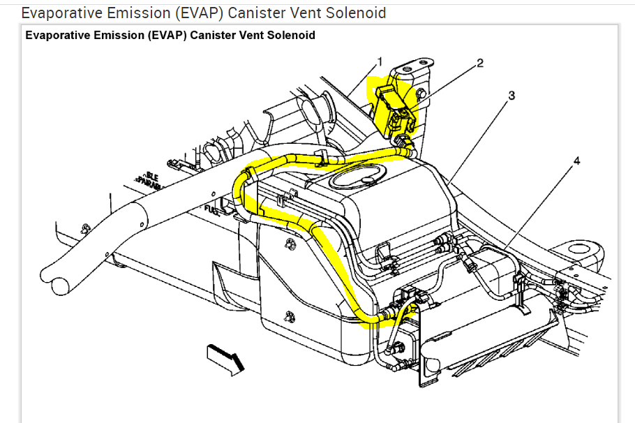 I attached a pic below and highlighted the location of the vent valve. Inspect it for a wiring or connector issue. Also, check hoses to and from it for damage. If everything appears to be good, then remove it for inspection. Check to see if there is evidence of a blockage or anything preventing airflow.
