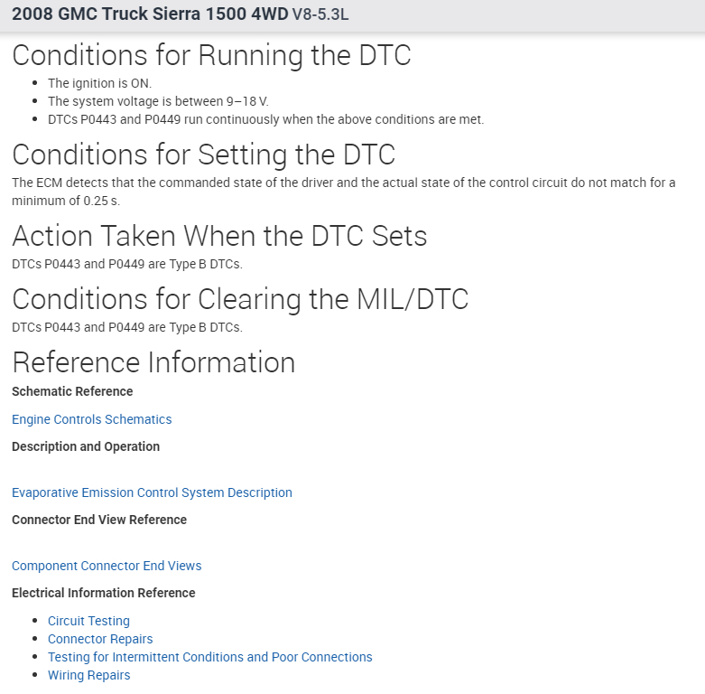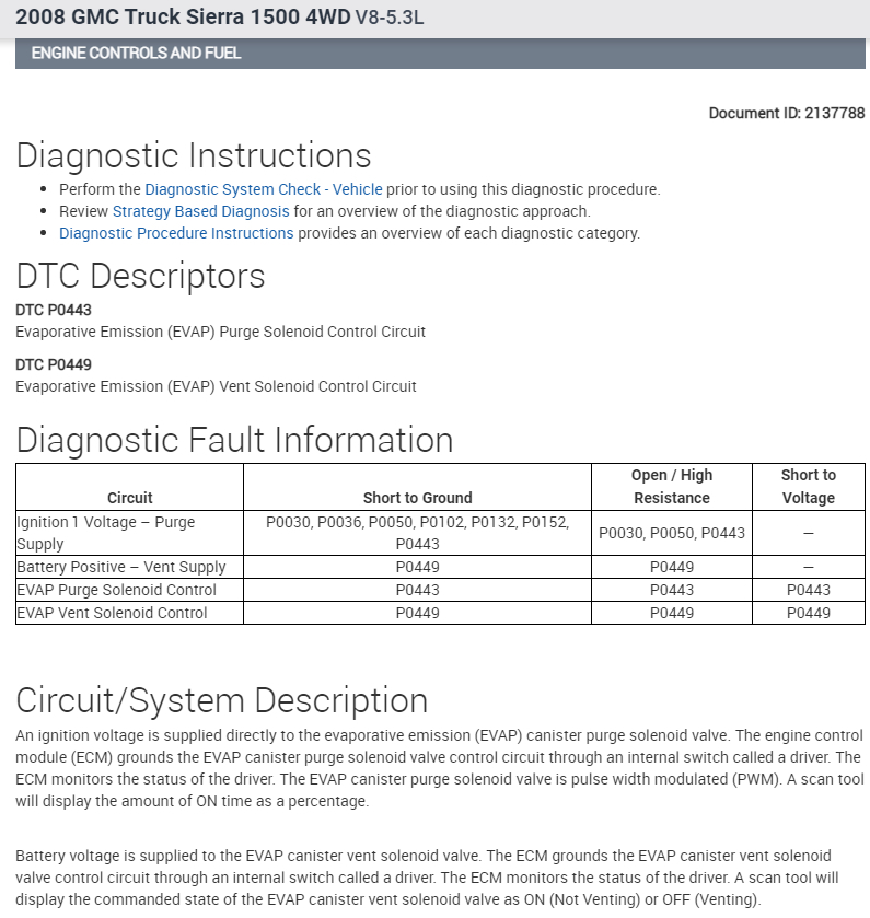 I have attached the diagnostics for the code P0449 below for your reference. Also included is the EVAP hose diagram.