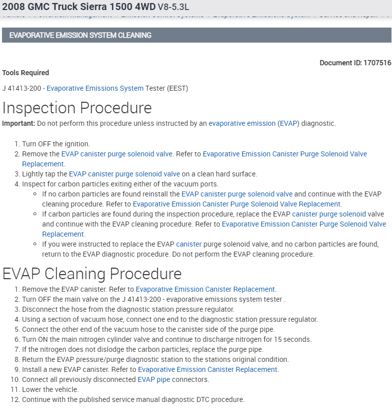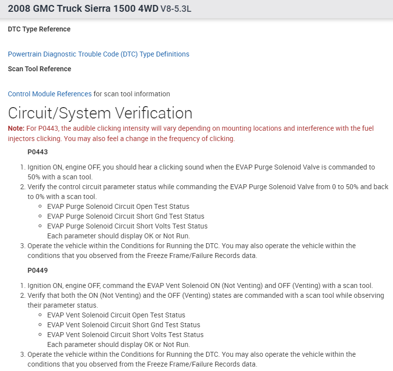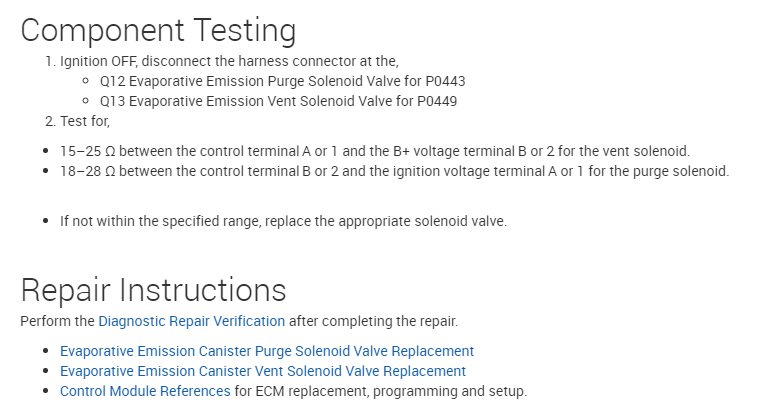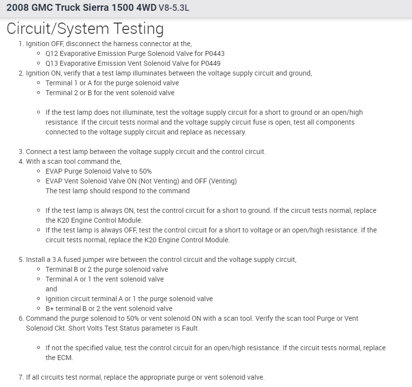 You guys are great but most of the advice requires an upscale can scan tool which most DIY like me do not have. I tested the purge valve, and it is holding suction vacuum and can actually hear and feel it modulating. I replaced the hose from purge valve all the way to canister. I could feel the vacuum at the end of hose. I removed the evap emissions canister solenoid and tested it with the 12 volts from the battery and got a strong clicking sound and could see it visually move. It is also holding 15lbs of vacuum on both side of solenoid when closed. to me it seems like both purge and emission solenoids are good. I could not get the emission solenoid to activate when terminal is plugged into it. Red wire is giving power to solenoid but the white wire that goes to ECM pin 61 does not seem to be working. If I take a wire from battery ground to the white wire on terminal i can get the solenoid to engage, but the ECM most not recognize that it's working because the wire is not going into the ECM. I cut the white wire by the terminal because it looked broken inside, and it was. spliced the wires together and it seemed to work and allow me to erase code. next morning the code is back again. Its driving me crazy/ What now?