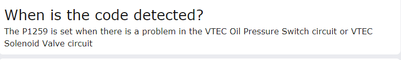 I need assistance in figuring what the problem is with my car. Has code p1259 low oil pressure. The car is a non v-tech.