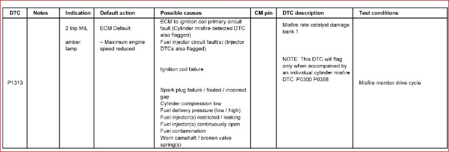 AutoZone checked codes - P1313 cylinder 5 misfire