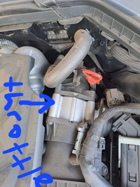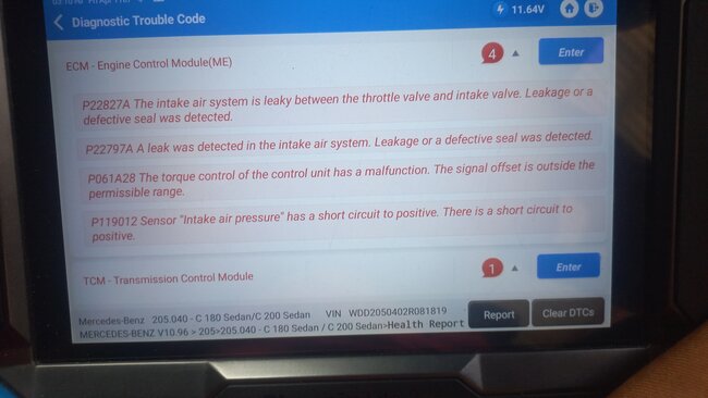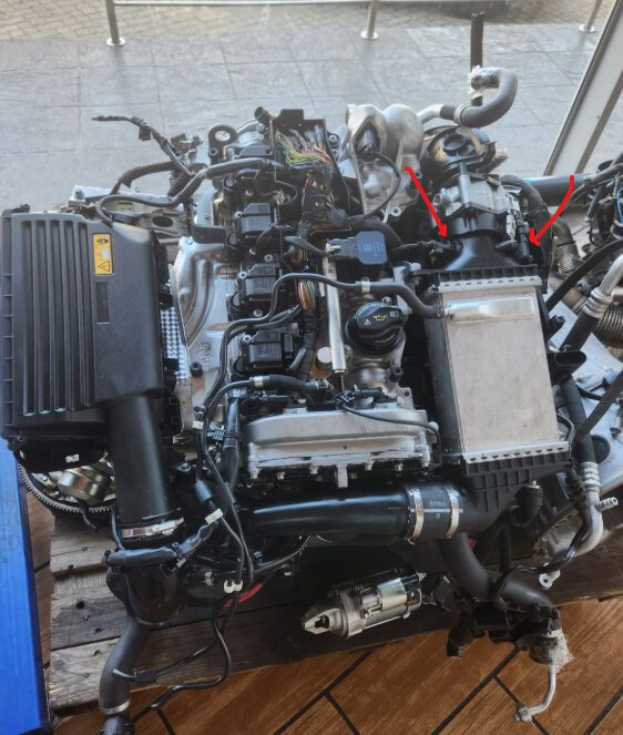 M274 is the model engine. Photos of the engine and diagnostic scan codes. When zoom in the photos there are 2 sensors opposite to each other before the throttle body. So it's 2 sensors, the throttle body and then intake manifold.