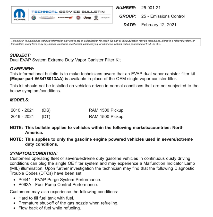 Did they say what the TSB was? I didn't see any TSB relating directly to the fuel pump module, there were a ton of TSBs and recalls, i only included the ones having to do with safety issues, or there would have been 40 pages of bulletins.