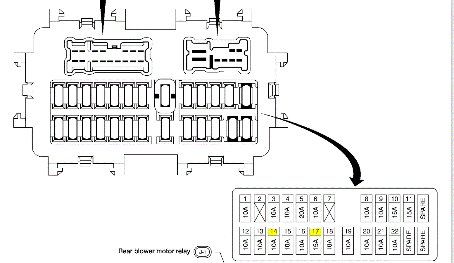 The fuse box above should be the one in the glove box. Also, do you mean that only one side of the terminal on the fuse has the wire? We don't want the wire to jump from terminal to terminal.