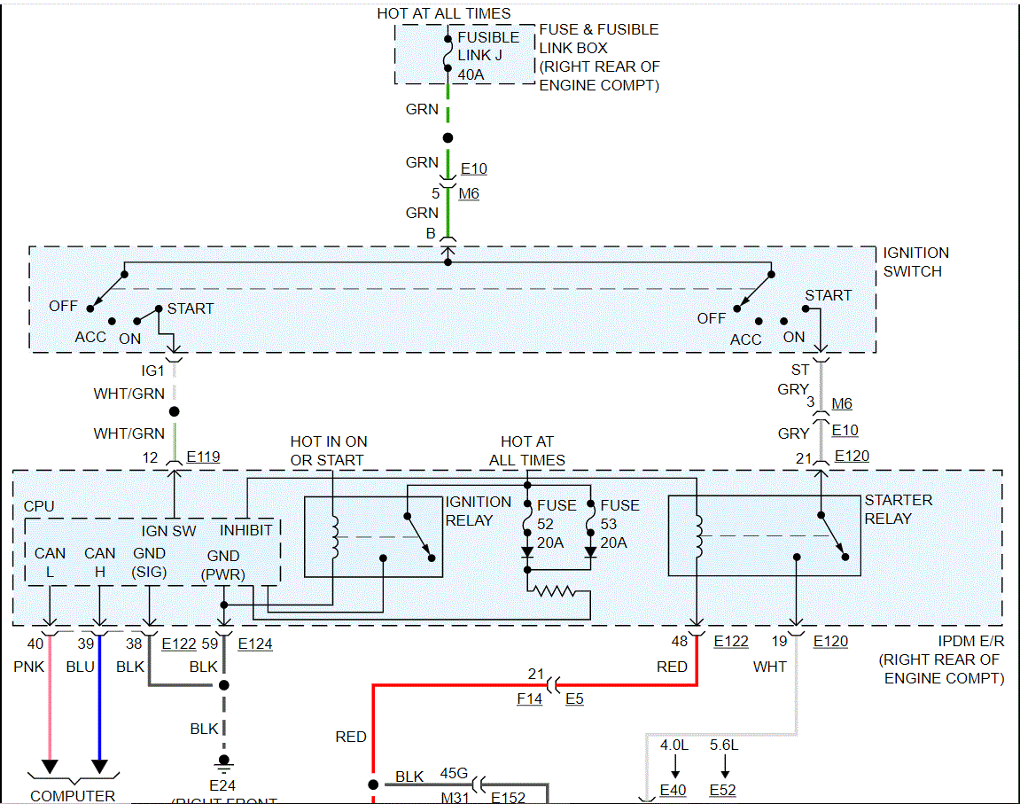 In the fusible link box (near the battery), locate fusible link J. See pic 3. I need to confirm power to and from it. If you look at the wiring schematic, not it powers the ignition switch. From there power goes through fuses and relays (tied into the CAN). Check those fuses as well.