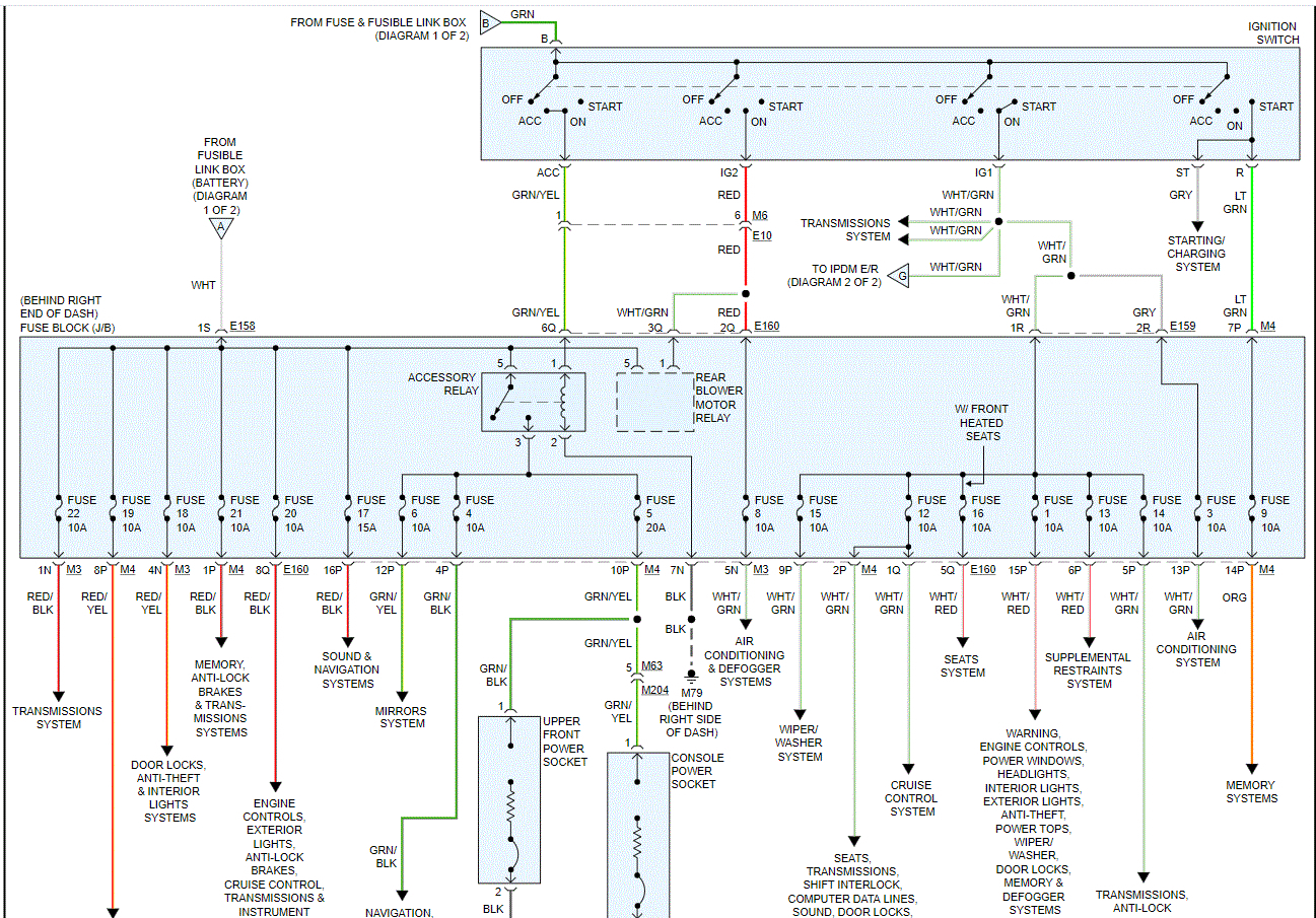 I attached the entire power distribution schematics below. I cut them in half so you can read them, but I overlapped them so you can follow from one to the next.