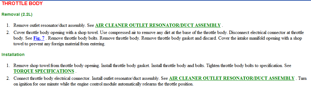 11.replace throttle body assembly. after replacing throttle body go to step 13.