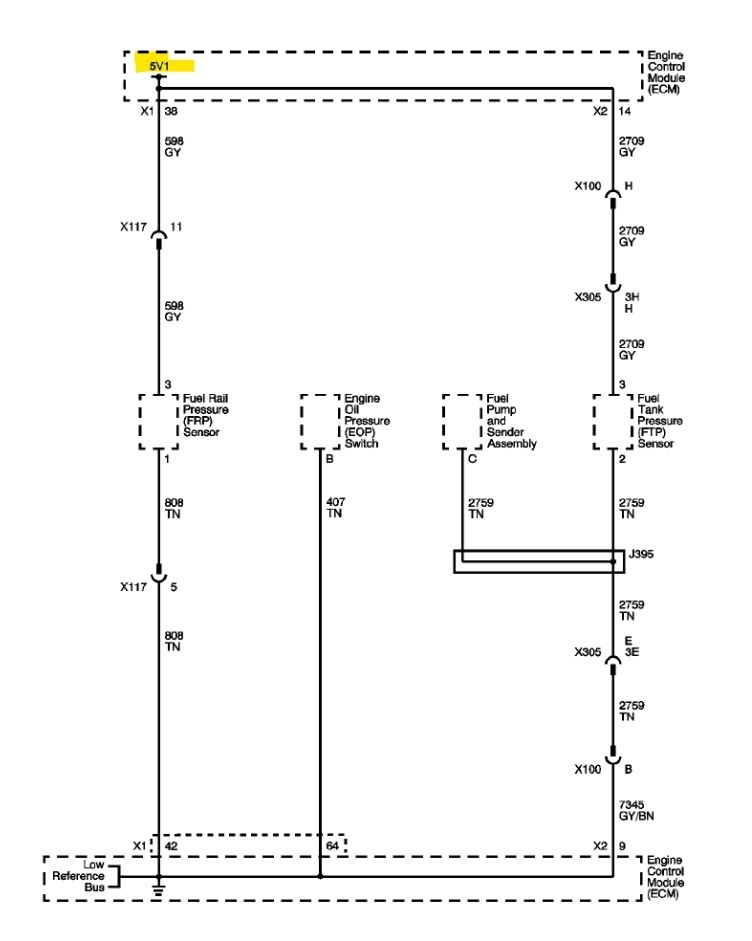 Now a shorted-out sensor (so anyone of these sensors) can pull down or affect the 5v feed. So, it's best to back probe one of the sensors setting a code and monitor the 5volts, if it is low or reading 0volts, start unplugging sensors until it comes back up to 5-volts.
