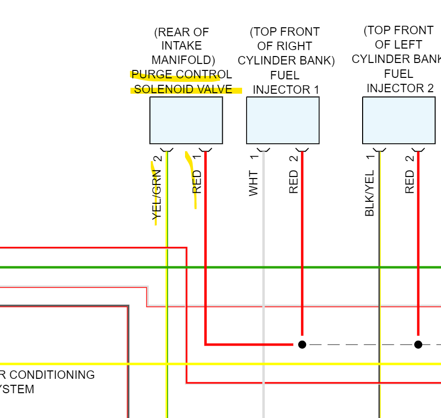 And on a side note, it looks like the system with 2 Purge valves might be the (H4DOTC) engine with a Turbo. The other is the (H4DO) engine without a Turbo. The diagram below is a better view of where the 1st valve is located, you'll notice the vacuum hose marked in green, that runs to the Intake manifold.