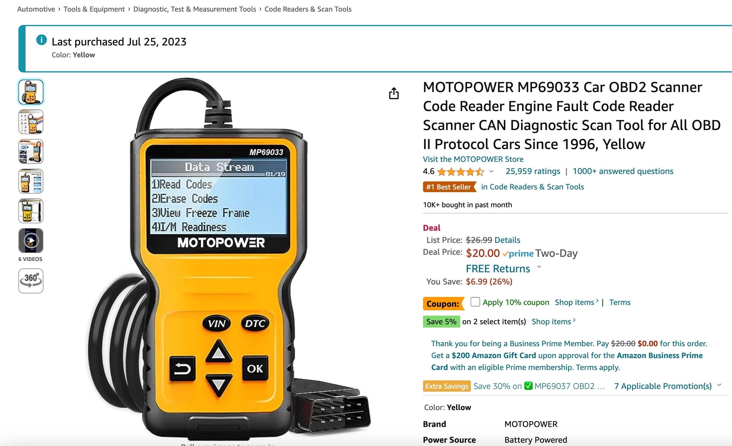 Below is a screenshot of the scanner that I'm using. I am just getting that one code. When all this first happened, I got the rich code, but I have not received it since I reset it the first time. I do not have the old part, but if I need to go buy a new one to try it, I can. I'm heading to a wedding tomorrow, but when I get back, I will see if I can get any gas out of the line.