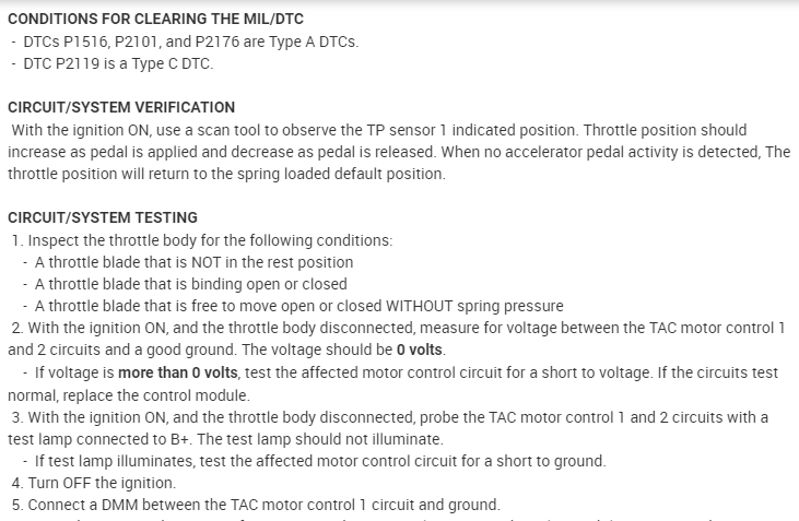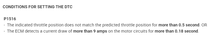 P1516 (TAC) throttle actuator control module throttle actuator position performance.
