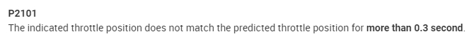 P2101 The indicated throttle position does not match the predicted throttle position.
