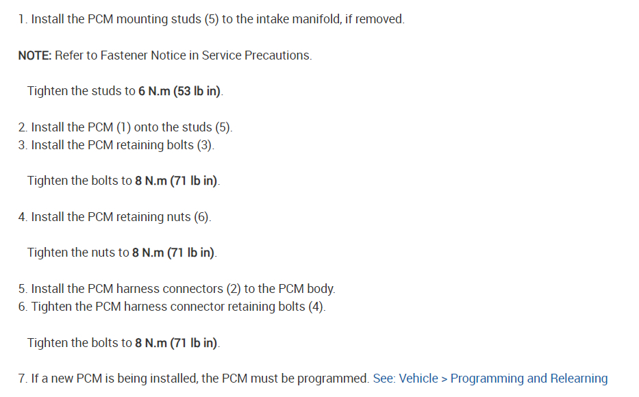 7. If a new PCM is being installed, the PCM must be programmed. See: Vehicle > Programming and Relearning