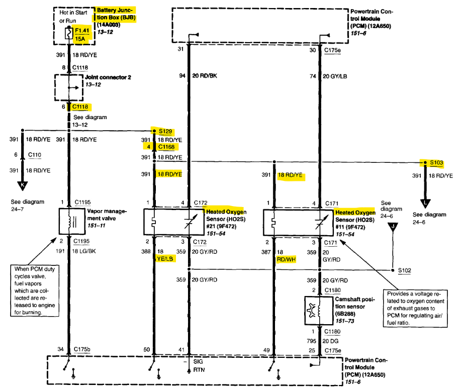 They should fluctuate between 0.2 to 0.8v at a fast frequency. And the lack of this switching is what is causing the code. So, checking live data on the scan tool can help give some direction. I will post a diagram of the fuses to check for the Oxygen heater circuits for you to check.