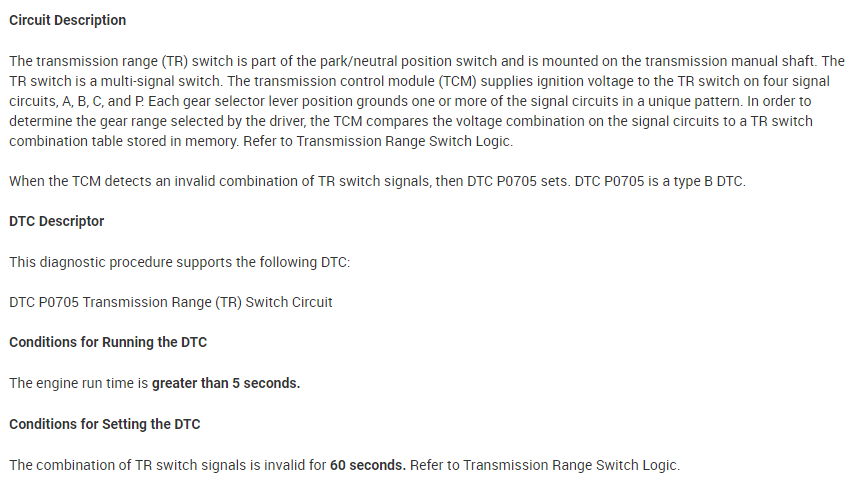 Because there was two possible culprits (TCM / PNP) creating the P0705 and because it would take a Professional In-Depth Evaluation (through the process of elimination).the repair needed to completed by a Professional. Repairs are scheduled after June 9th... I'll update after repairs have been made.