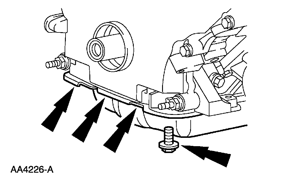 36. CAUTION: If one or both of the tensioner mounting bolts are loosened or removed, the tensioner-sealing bead must be inspected for seal integrity. If cracks, tears, separation from the tensioner body or permanent compression of the seal bead is observed, install a new tensioner.
