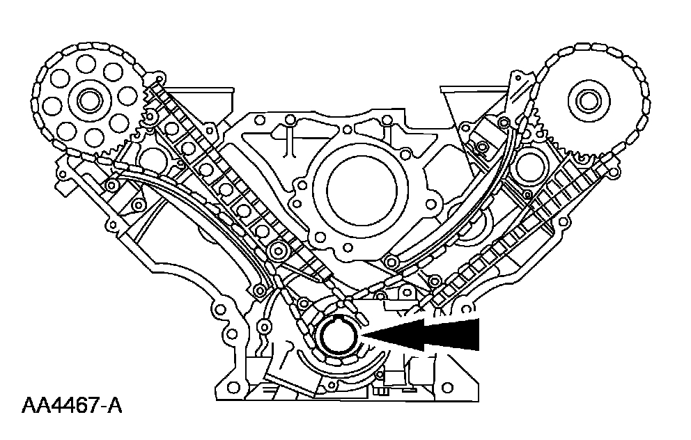 ^ Remove the LH timing chain and crankshaft sprocket(s).