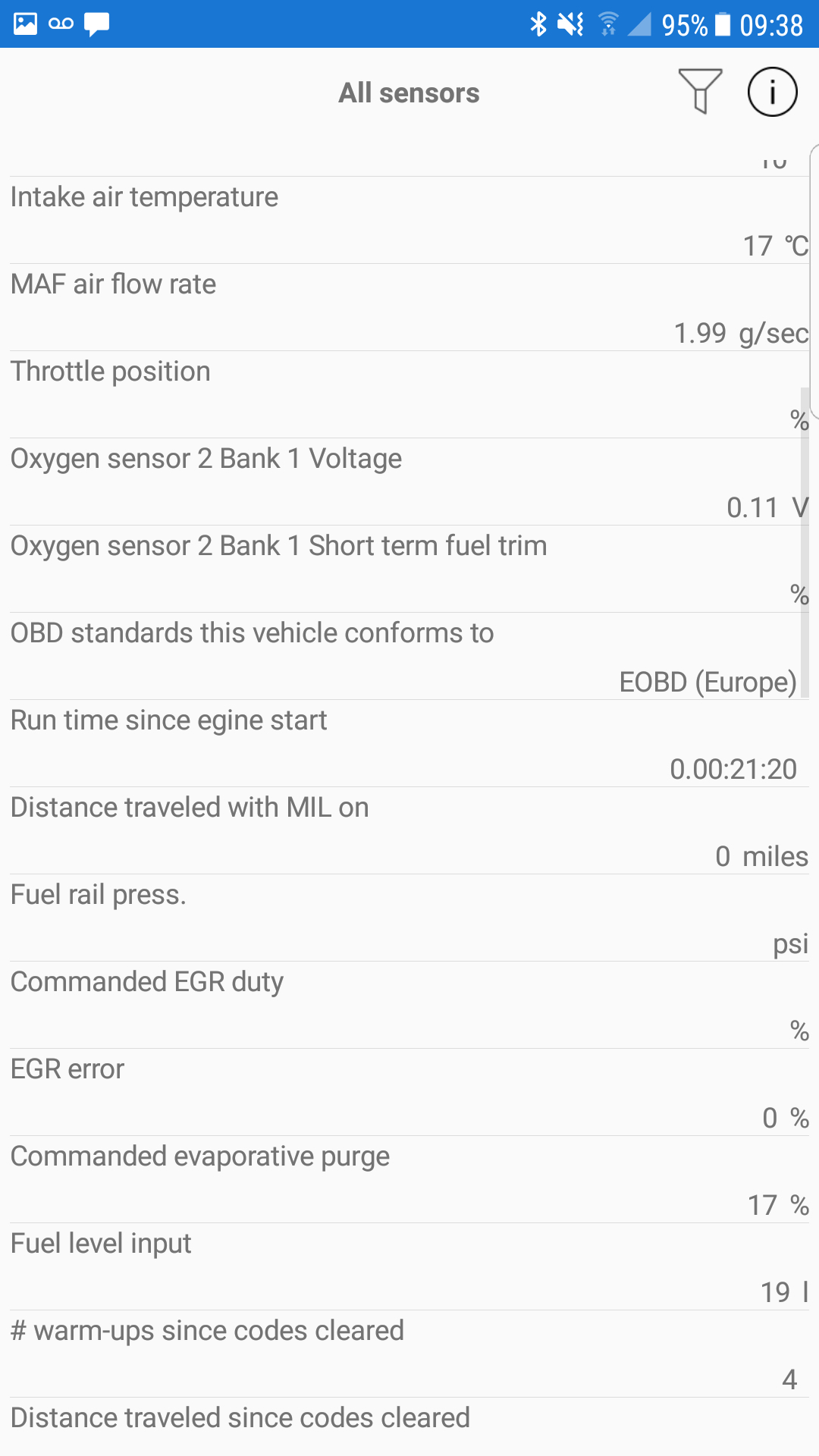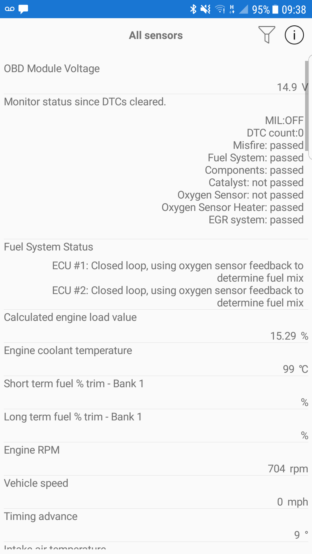 I have attached a few images of readings that i took using OBD scanner on a cold start.