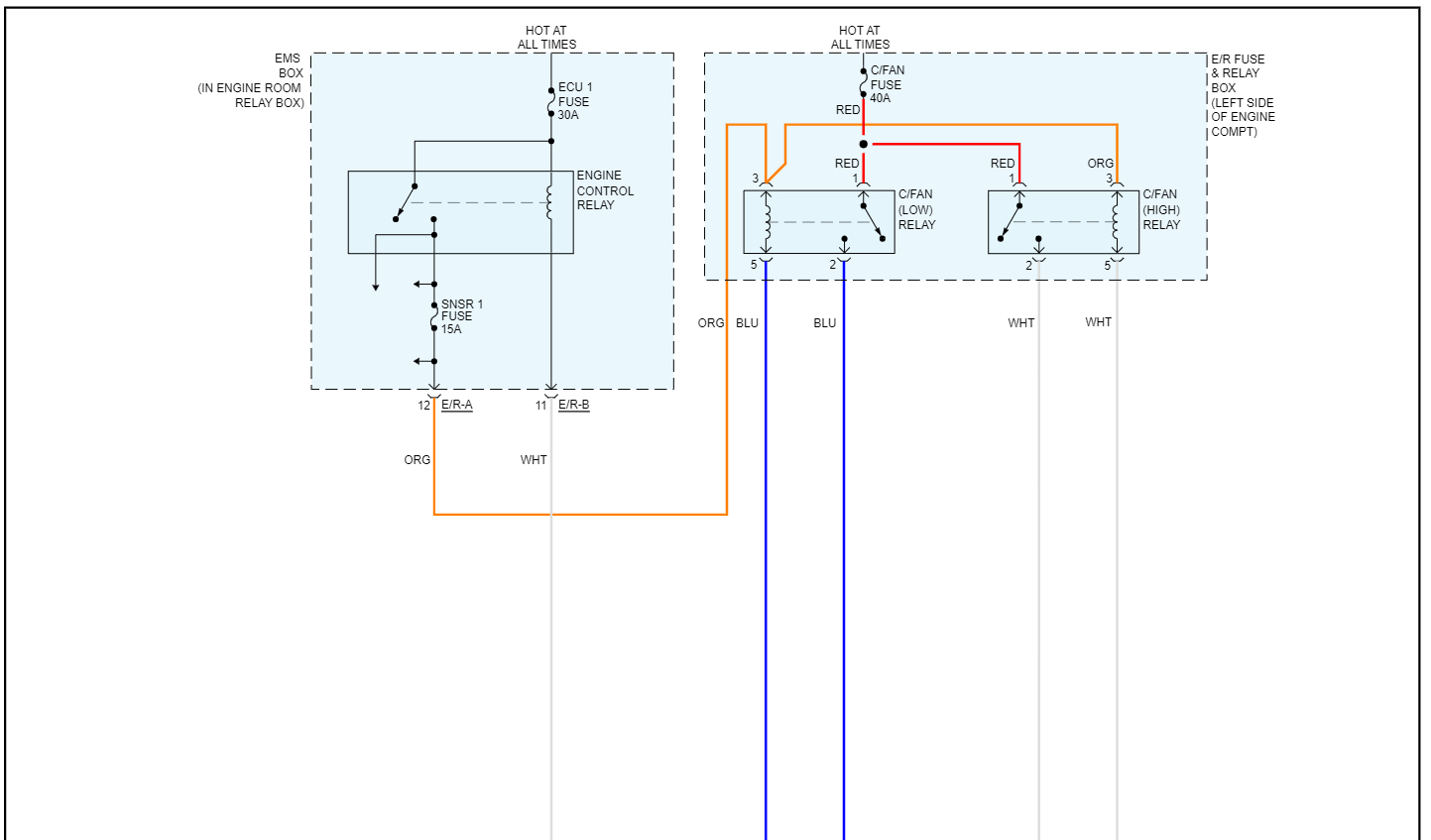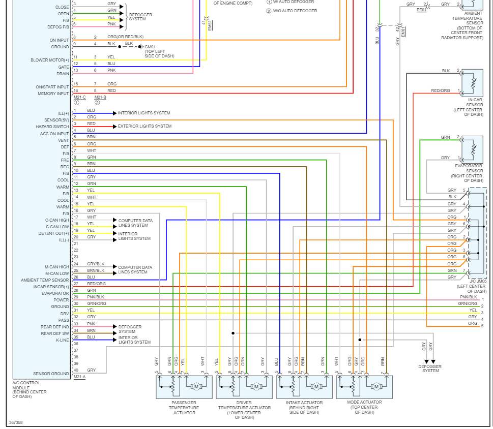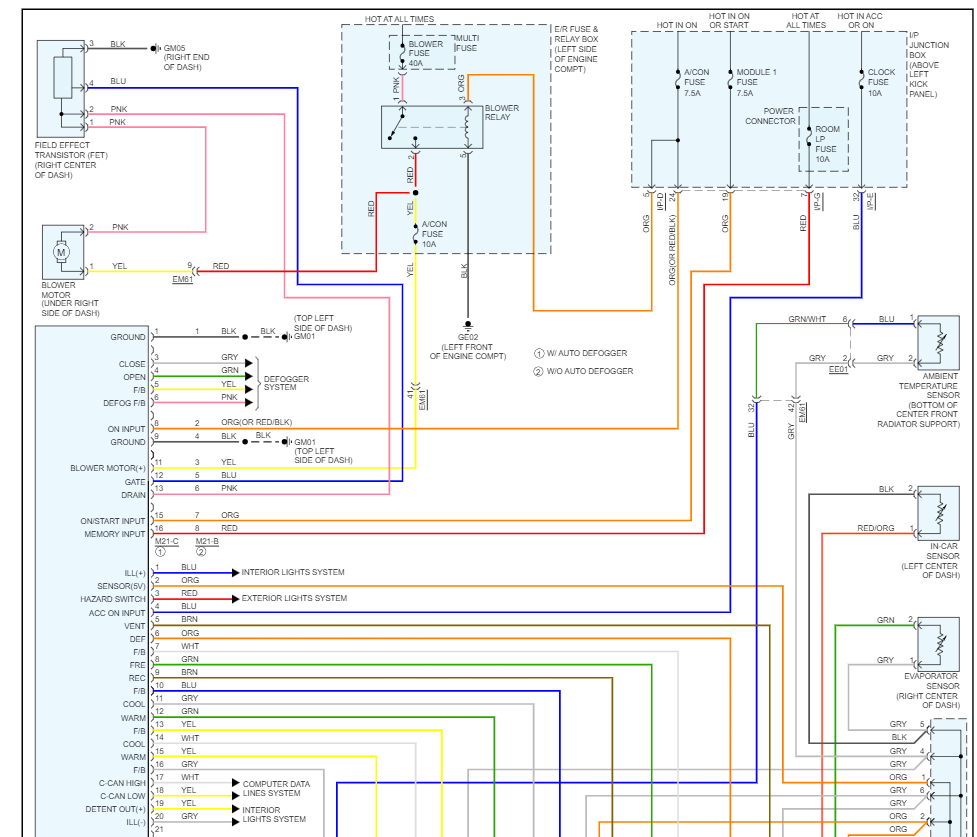 I also used a power tester to the wires and the fan plug in and it showed no power. But when unplugging the temperature sensor, the fan kicks on automatically after the key gets turned on. With all that happening the A/C is also not working.