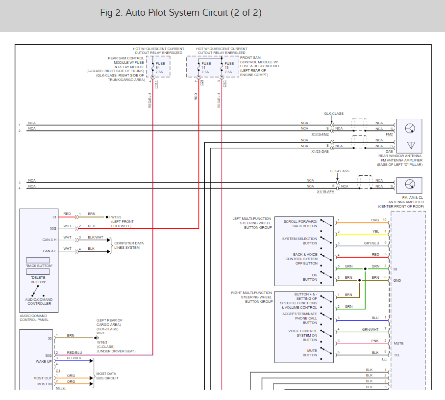 It sounds like the front SAM control module is out. To be sure lets do a CAN scan which will run through all modules to pinpoint the issue. here is a video on the job being done. You can get a CAN scanner for about $50.00 on Amazon, make sure it does Mercedes. Also here are the wiring diagrams for the Command and auto pilot which work together so you can see how the system works and which fuses run the system (please double check).