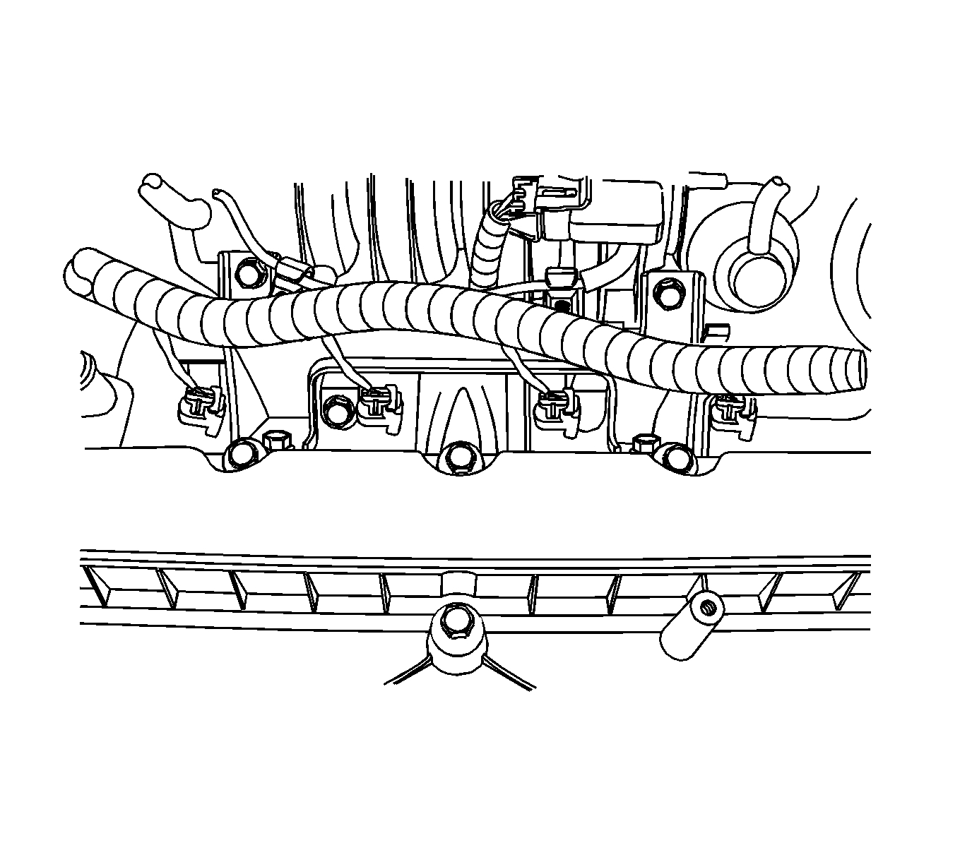 36. Install the upper bolts to the intake manifold support bracket.