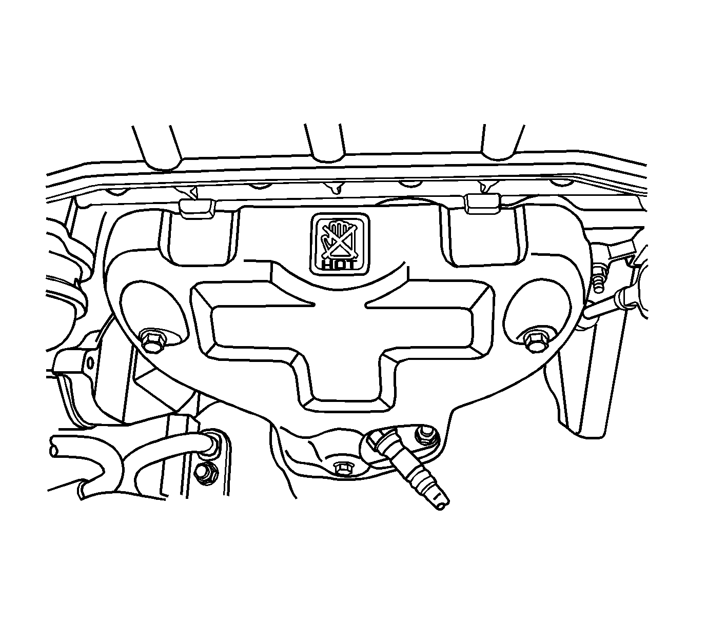 34. Install the exhaust manifold heat shield. Install the bolts to the exhaust manifold heat shield.