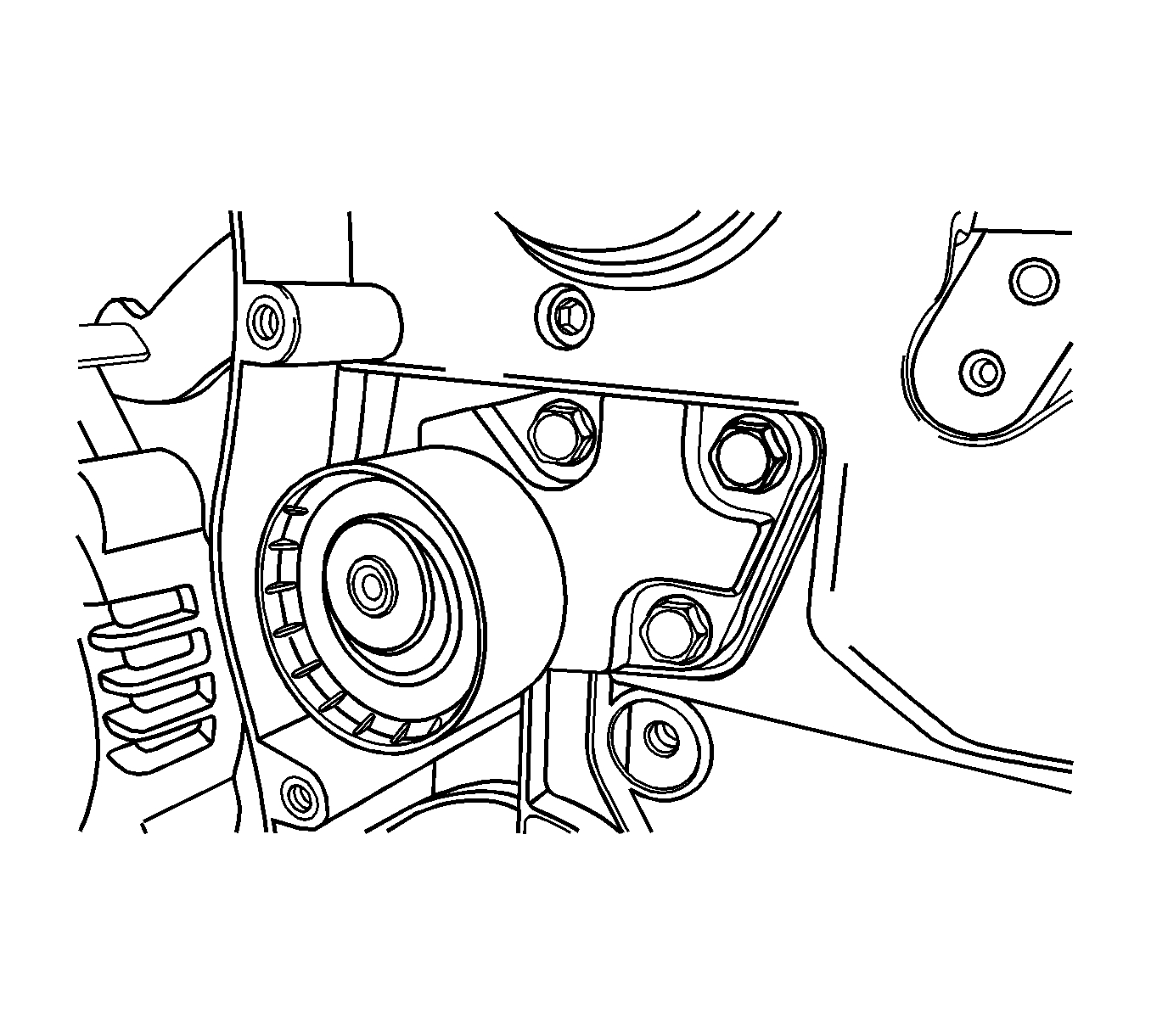 10. Install the timing belt idler pulley. Install the bolt. to the timing belt idler pulley