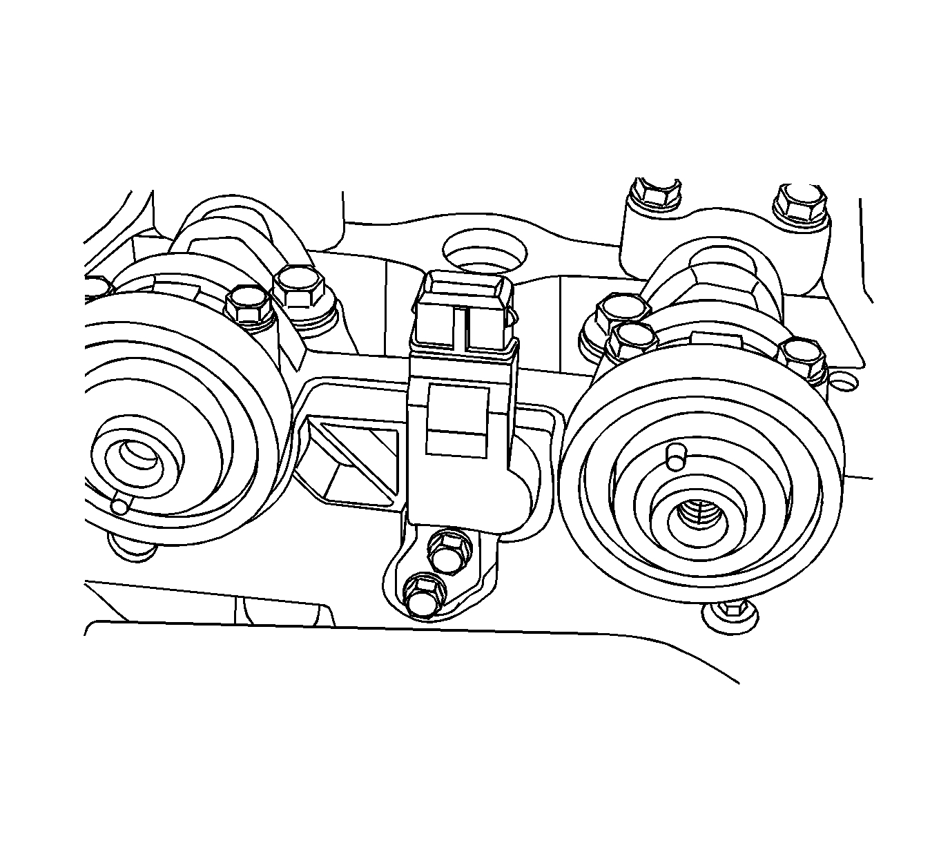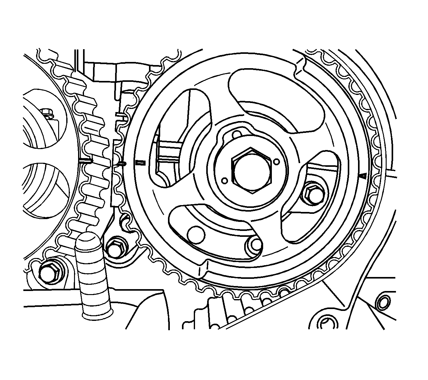 13. While holding the intake camshaft firmly in place, install the intake camshaft gear bolt.